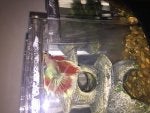 Please help! My Betta Cota was acting just fine 2 days ago. I performed a full water change and had to remove him from his bowl (3/4 gallon which I know is small, working on an upgrade) and place him back in. I have 3 male Bettas in identical aquariums and the other 2 are just fine. Cota was always the most active and fiesty of the bunch but now he just hides in his tank decor or stays at the top of the tank. When he does swim, it's a twitchy rapid swim, which he'd never done before, and also seems to float right back to the top. I thought I could be swim bladder, which his brother King had but is all healed up and 100% now, but his abdomen doesn't appear to be puffy. He stops and flares his tail on occasion but for the most part he went from constant activity, to no activity, after the water change. Can anyone help? Here are some pics of him. Video failed